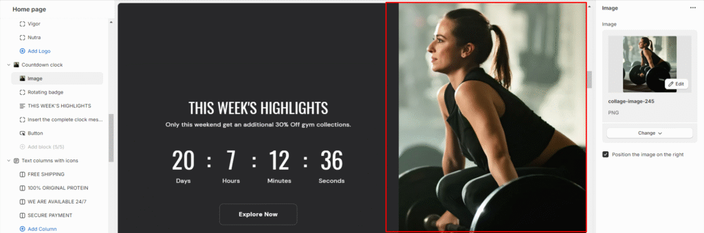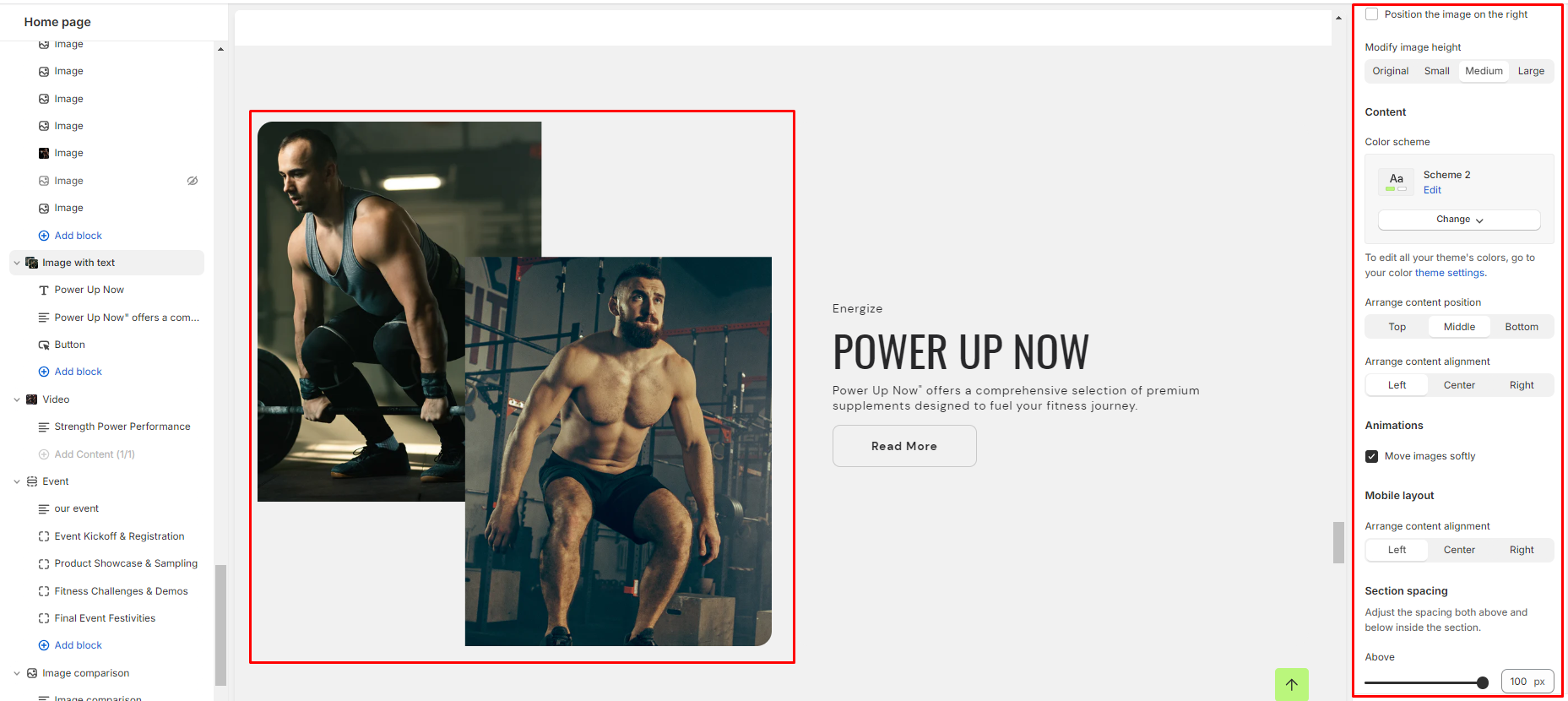 - After integrating the image gallery section, customize its settings by accessing the options on the right side.