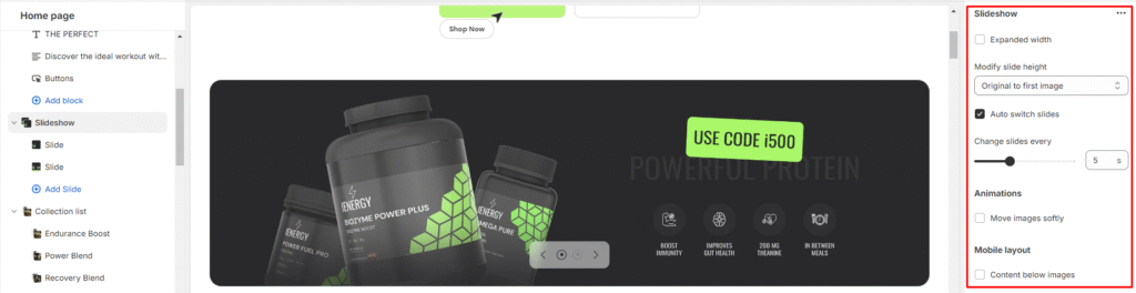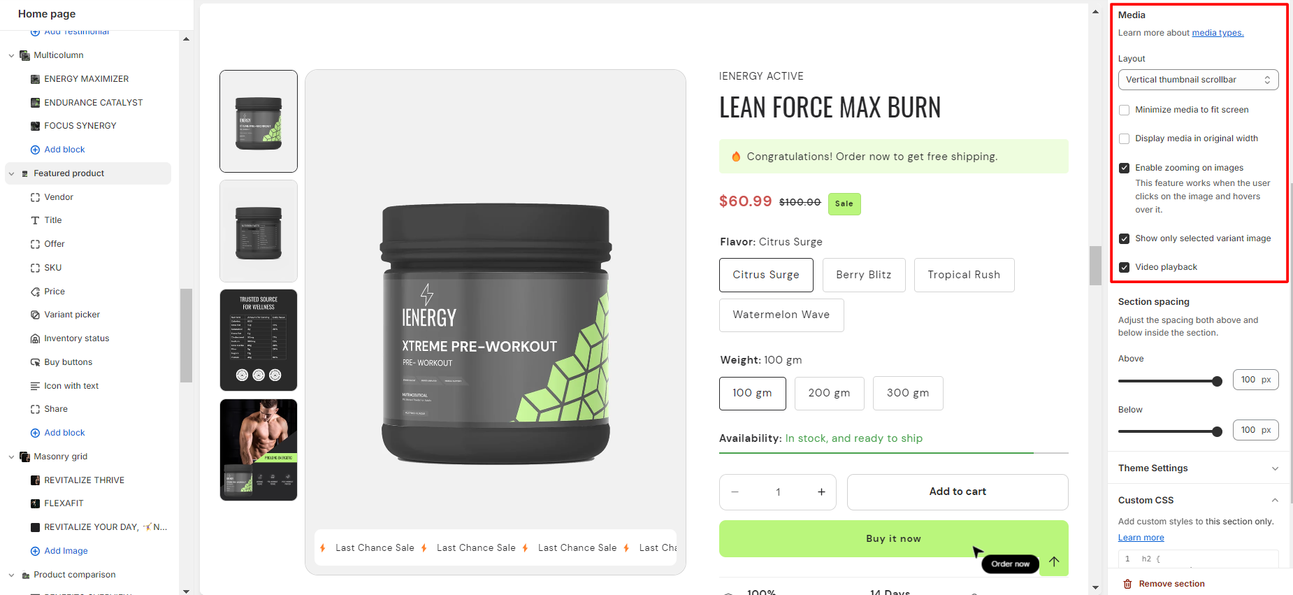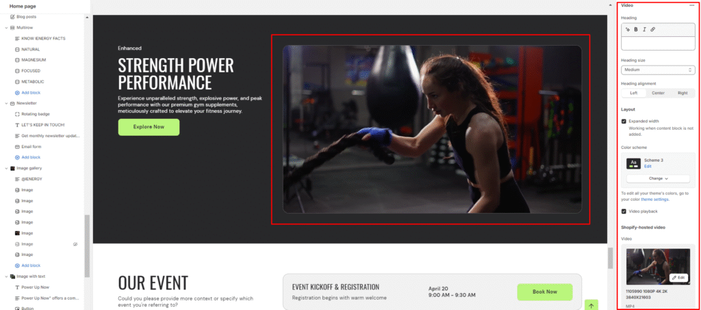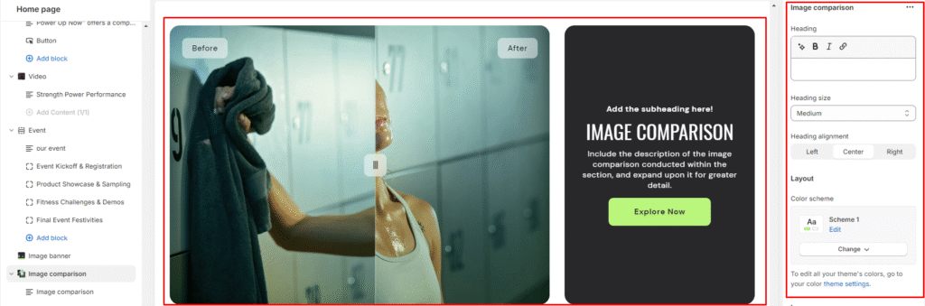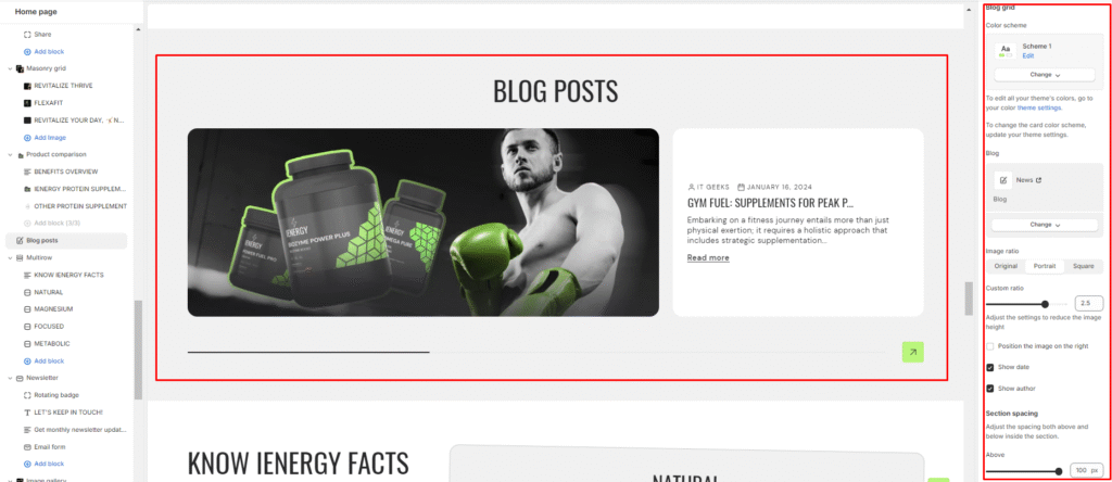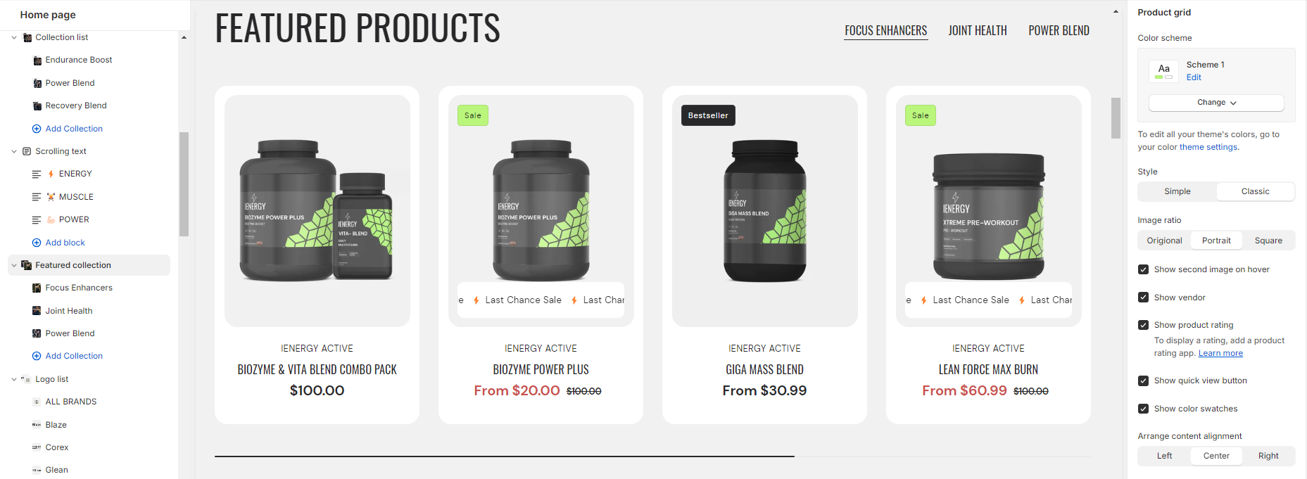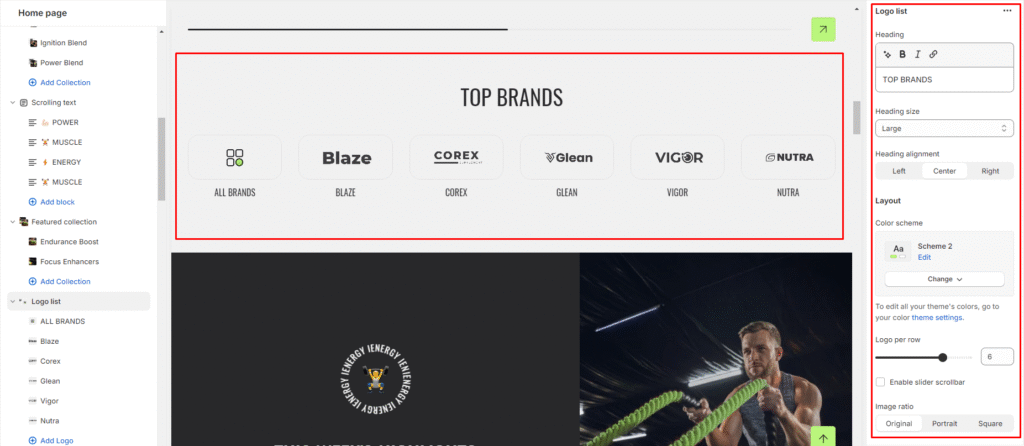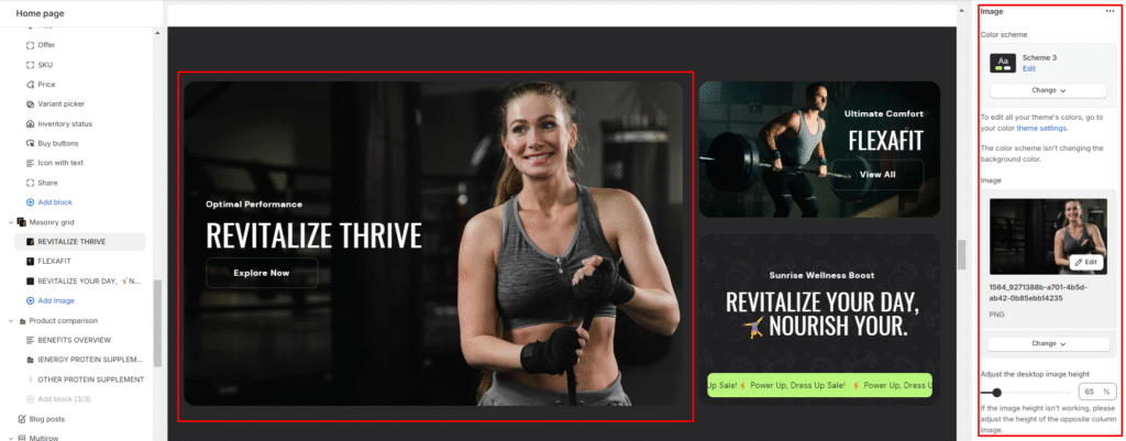 An image gallery section in the theme editor is a customizable feature that enables users to display a collection of images in a visually appealing and organized manner on their website. This section allows you to showcase multiple images in a grid or carousel format, providing a user-friendly way to present visual content such as product photos, portfolio images, or any other visual elements relevant to your website’s purpose. Users can typically upload, arrange, and customize the appearance of images within the gallery section to enhance the overall aesthetic and engagement of their website.