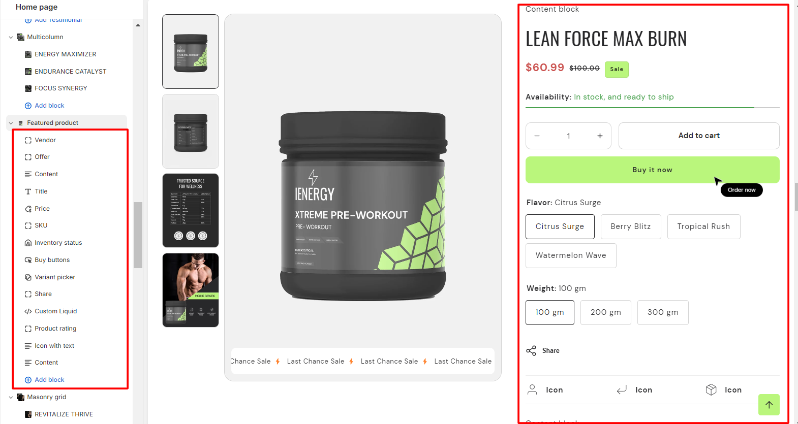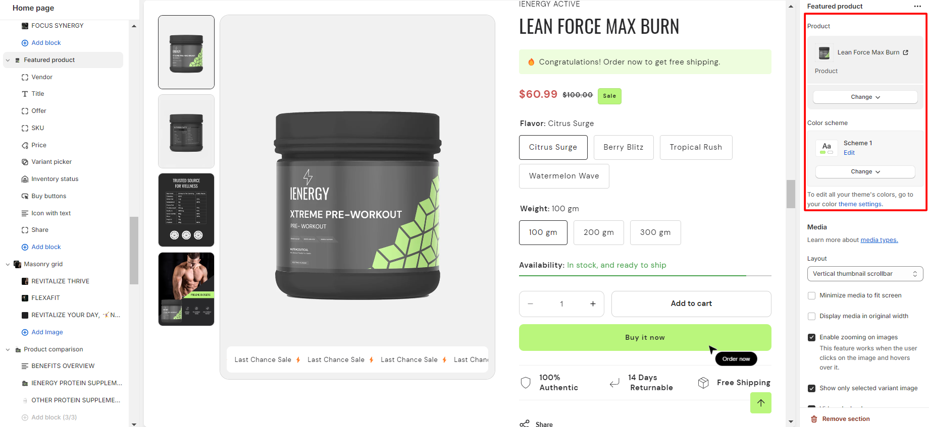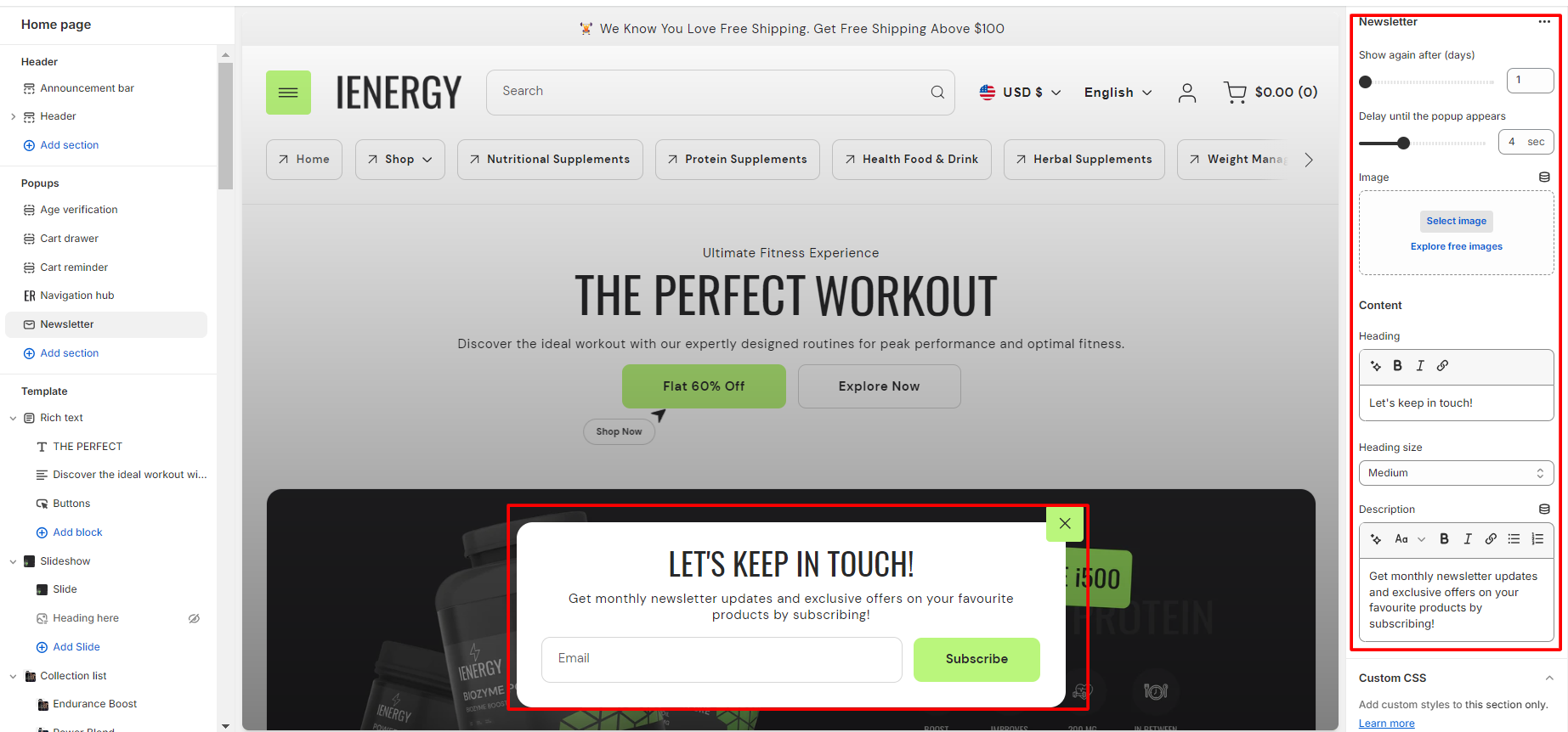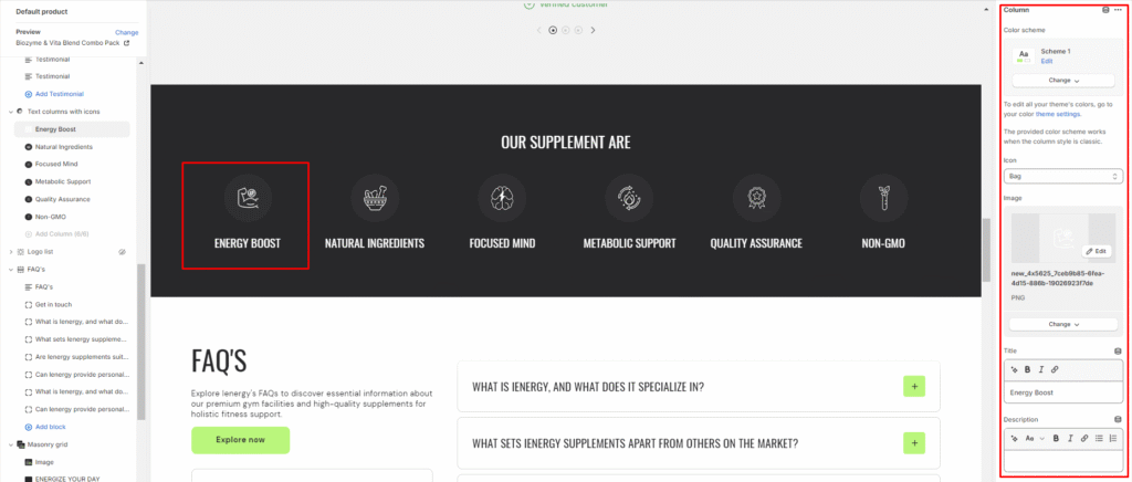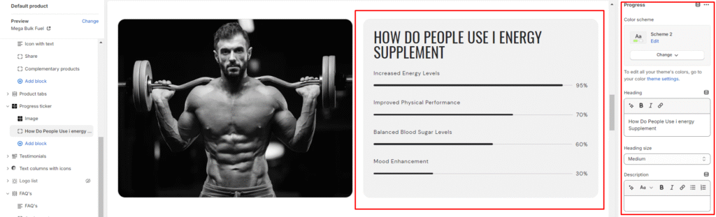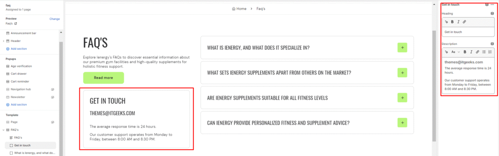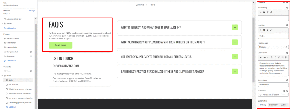 An image gallery section in the theme editor is a customizable feature that enables users to display a collection of images in a visually appealing and organized manner on their website. This section allows you to showcase multiple images in a grid or carousel format, providing a user-friendly way to present visual content such as product photos, portfolio images, or any other visual elements relevant to your website’s purpose. Users can typically upload, arrange, and customize the appearance of images within the gallery section to enhance the overall aesthetic and engagement of their website.