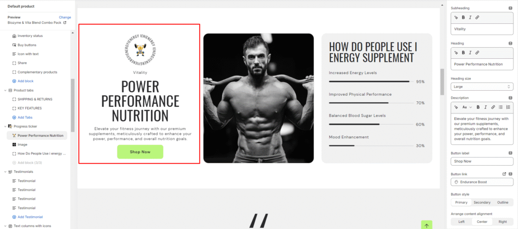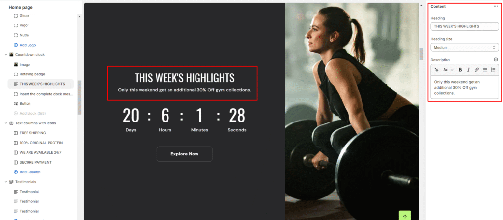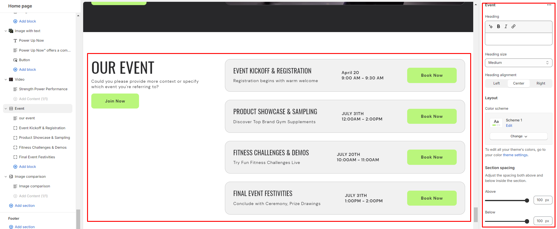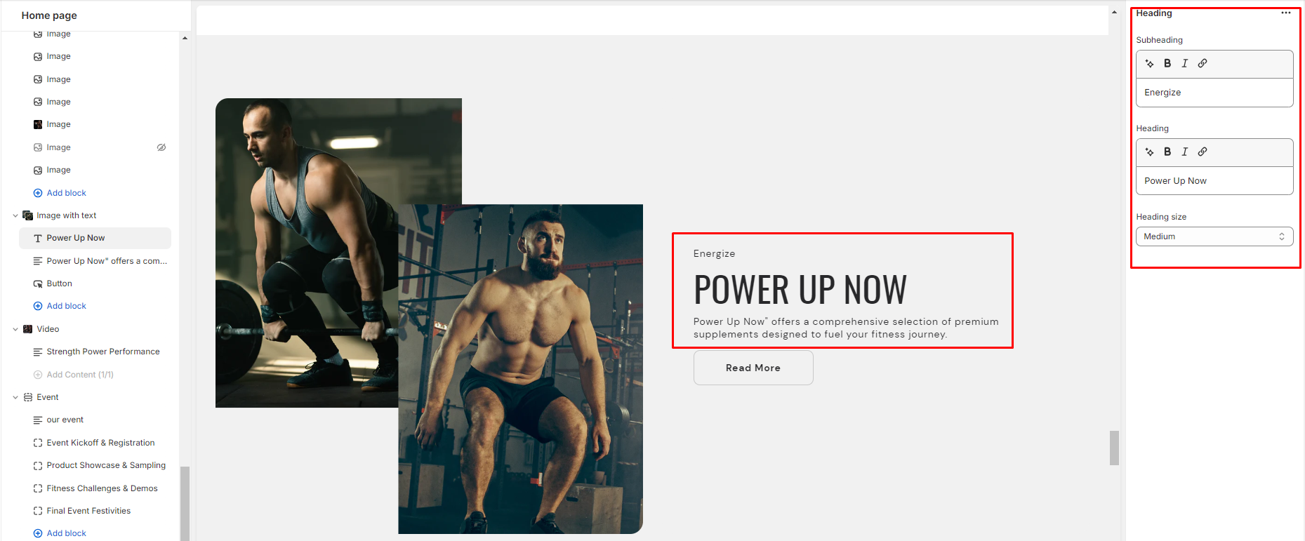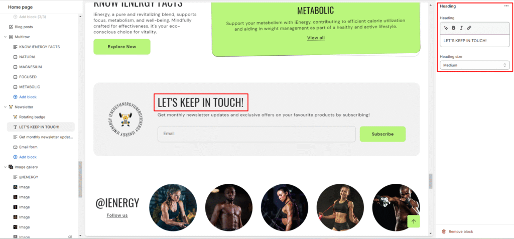 - Start by adding a heading to the section. Tailor the heading size and alignment according to your preferences from the provided options.