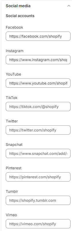 8.You also have the option to add social links for platforms such as Facebook, Instagram, YouTube, TikTok, Twitter, Pinterest, Snapchat, Tumblr, and Vimeo.