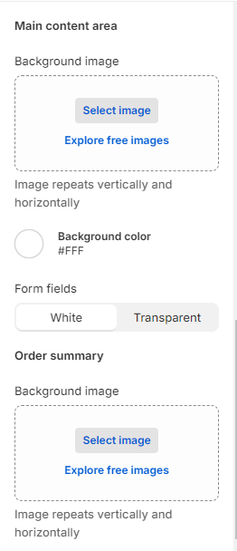 4.Main Content Area: Customize the background of the main content area in the checkout section.