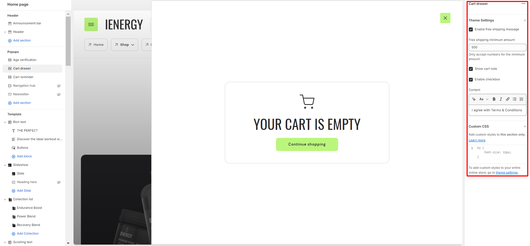 - Show Cart Note: Provide an option to display a note or message in the cart section.This note could include important information or instructions for customers, such as special promotions, delivery details, or return policies.