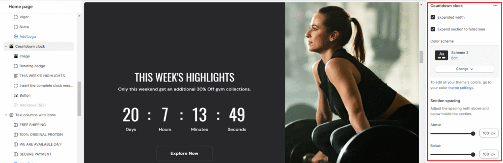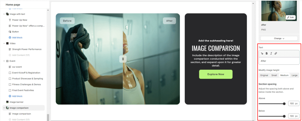 - Finally, fine-tune the spacing above and below the section using the section spacing slider.