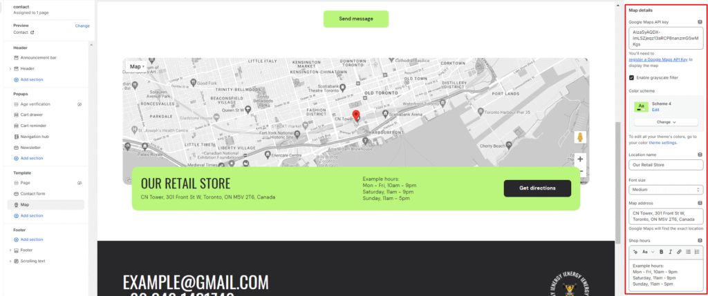 - After setting the color scheme, add the contact information which you wish to display in your footer section.