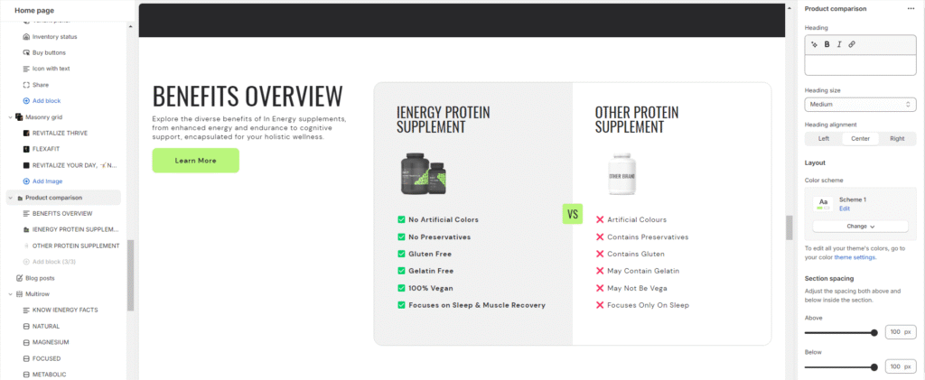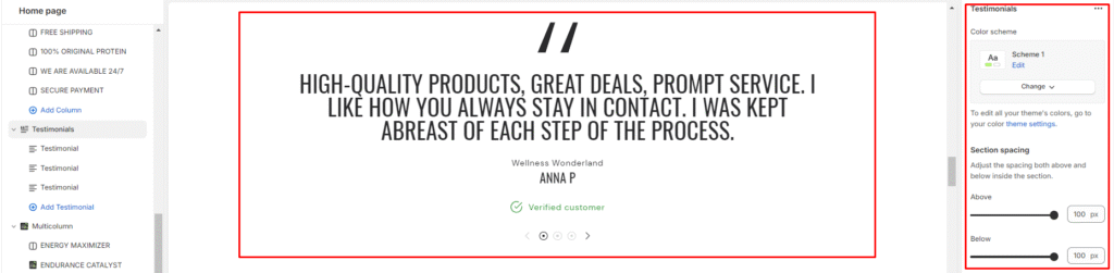 A divider in the theme editor serves as a tool that allows you to control and enhance the spacing between two sections within your website. This feature plays a crucial role in optimizing the visual layout and overall aesthetic appeal of your site by providing a means to create well-defined and visually pleasing separations between different content areas. It grants you the flexibility to customize the spacing according to your design preferences, contributing to a more polished and organized appearance for a seamless user experience.
