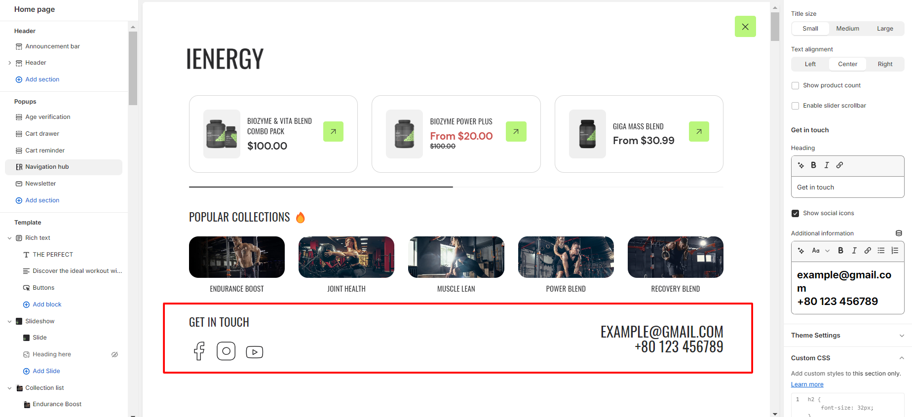 9.Optionally, you can utilize the custom CSS option to incorporate unique styles into the section.