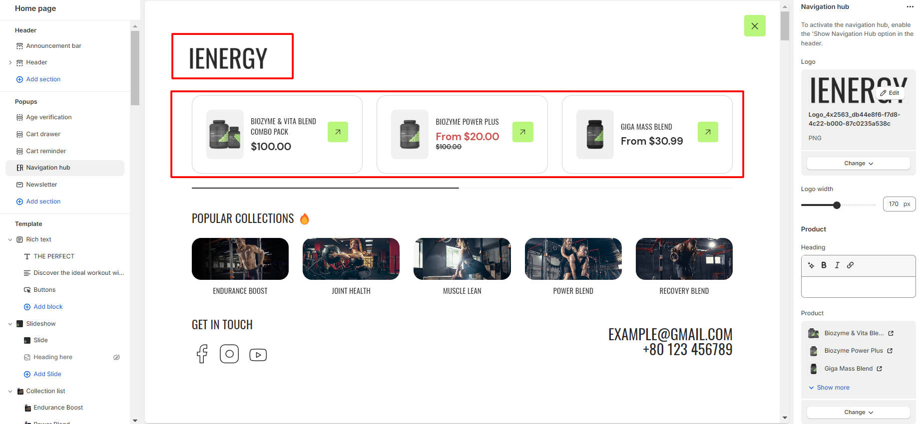 - Next, you can enable the option to show the navigation hub. To edit the navigation hub, navigate to the Popups group and access the navigation hub section for editing.