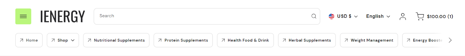 - Menu Integration: Integrate relevant menus into the search section, such as the main menu or additional navigation options.